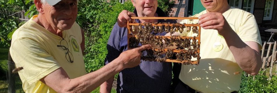 Am 15. Mai hatten wir Imkermeister Ingo – Wulf Lau für ein Tagesseminar„Wege zur neuen Königin“ eingeladen. 26 Teilnehmende konnten so manchesüber verschiedene Wege zu einer neuen Königin erfahren ohneVorkenntnisse war es nicht leicht dem zu folgen. Im Rahmen des Seminares  wurde auch eine Sammelbrutableger mit Zuchtstoff bestückt. Bei einemersten Interessierten Blick nach der Veranstaltung …