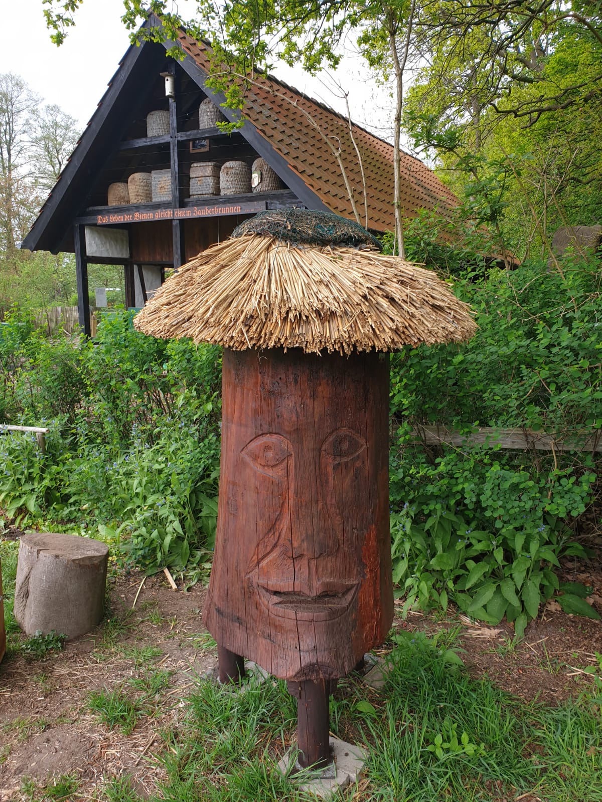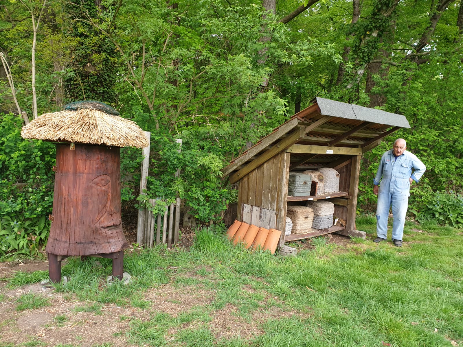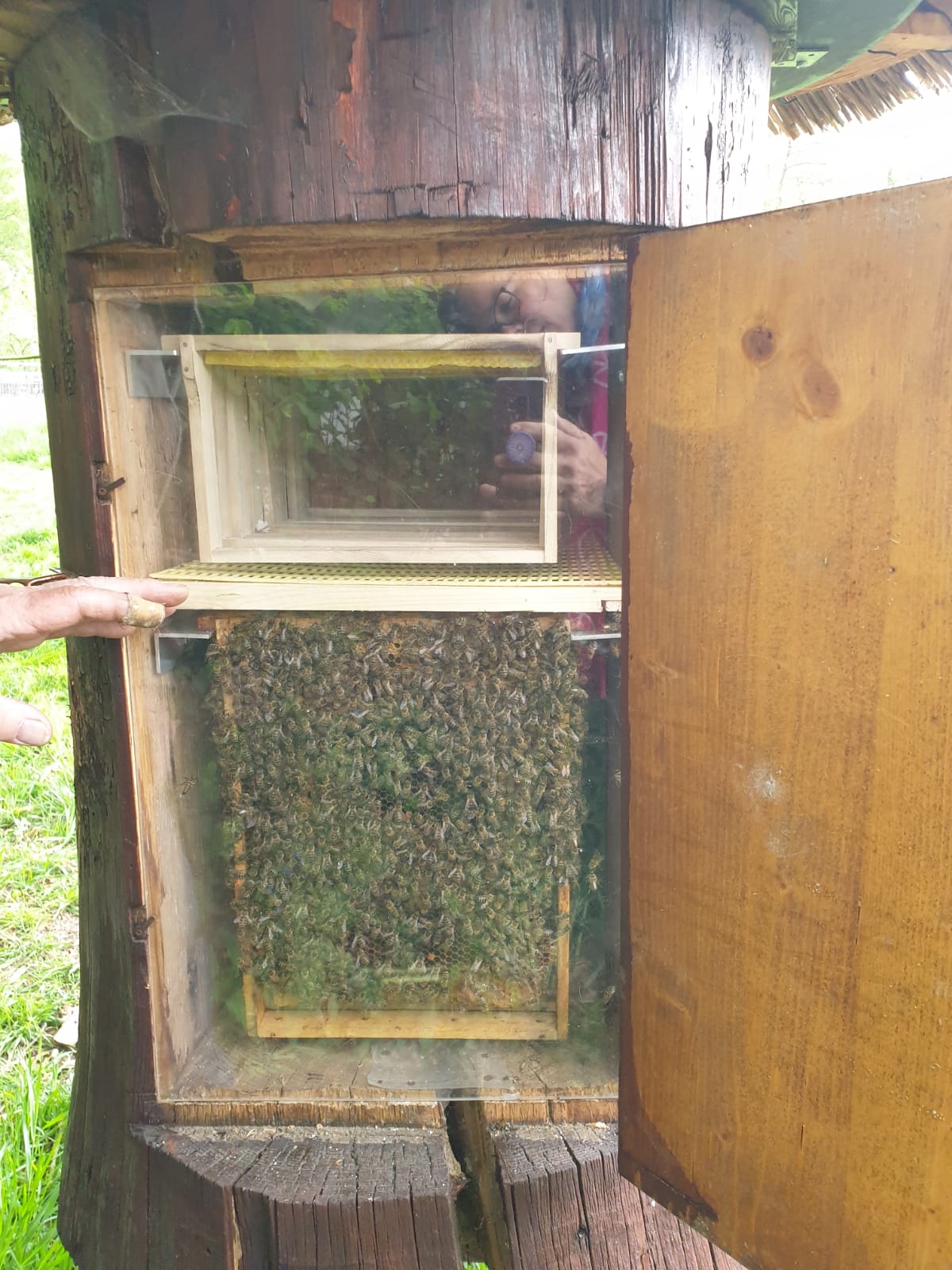 Durch das Engagement einiger unserer fleißigen Mitglieder erstrahlt nun eine ältere Klotzbeute am Lehrbienenstand in neuem Glanz und wird auch bereits von einem Bienenvolk bewohnt. Durch ein Fenster kann man von hinten in die Beute sehen.